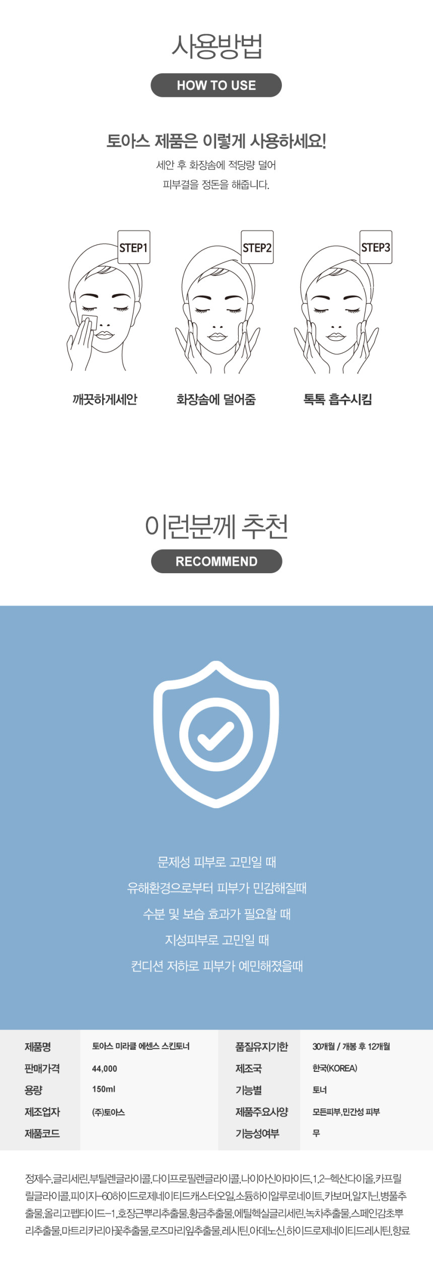 토아스 스킨토너는 흡수력이 좋아